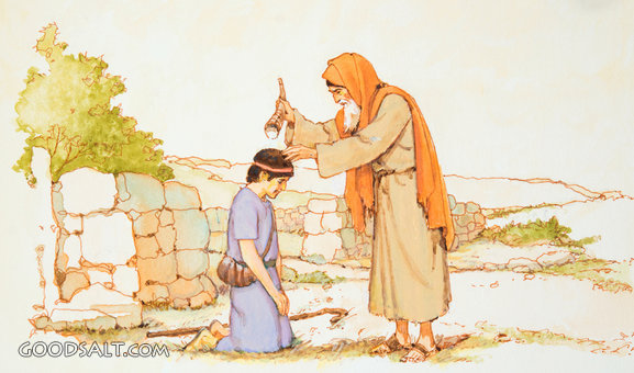 kneel, collection, old, samuel, king, oil, prophet, anoint, young, david, horn, lifeway
