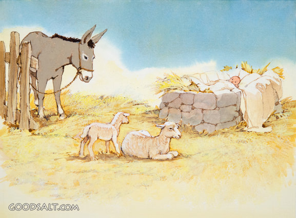 Jesus, lying, collection, baby, lamb, sheep, hay, manger, straw, floor, donkey, stones, in, lifeway, lfwas2247