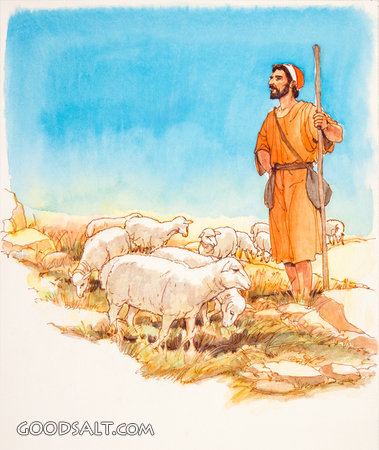 Shepherd Watching Flock of Sheep John 10:11-14 distance, collection, looking, grazing, shepherd, sheep, male, flock, stick, walking, in, are, off, lifeway, lfwas2249, prod PROJECTION - License for PowerPoint™ PRINT – buy a print of this picture; optional frame Bible Hub |
