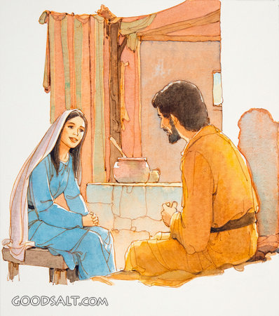 Mary Talks With Joseph. Matthew 1:20 bench, talking, telling, collection, pot, joseph, mary, spirit, holy, dream, stool, across, kitchen, about, sitting, from, stove, on, is, he, her, are, by, they, has, lifeway, she, lfwas2256, probably, conceived PROJECTION - License for PowerPoint™ PRINT – buy a print of this picture; optional frame Bible Hub |