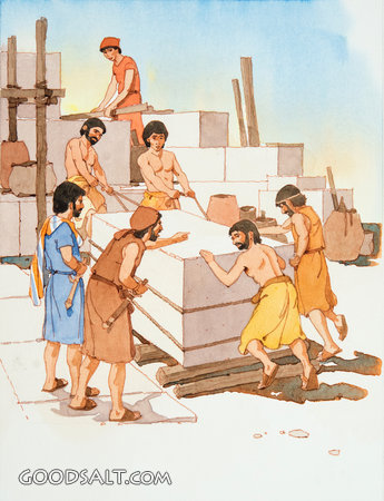 Building the Walls of Jerusalem Nehemiah 2:20 Nehemiah 3:1-16 Nehemiah 6:15 two, pulling, pushing, collection, activity, men, seven, laborers, other, lifeway, lfwas2265, skid PROJECTION - License for PowerPoint™ PRINT – buy a print of this picture; optional frame Bible Hub |