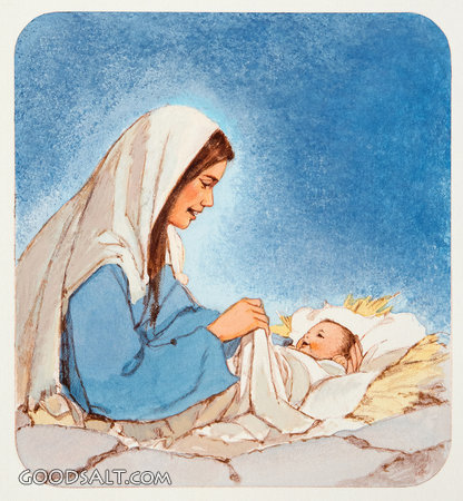 Mary With Baby Jesus in a Manger Luke 2:7 christ, Jesus, lying, pulling, shoulder, collection, head, mary, manger, straw, blanket, smiling, up, and, profile, in, beside, him, lifeway, lfwas2271 PROJECTION - License for PowerPoint™ PRINT – buy a print of this picture; optional frame Bible Hub |