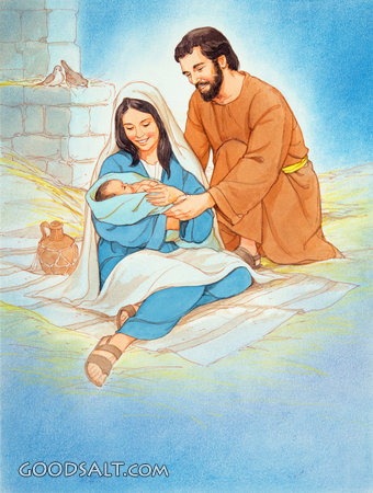 Baby Jesus, Mary Luke 2:16 holding, christ, Jesus, kneeling, collection, baby, joseph, mary, hand, floor, sitting, on, her, beside, his, lifeway, lfwas2300 PROJECTION - License for PowerPoint™ PRINT – buy a print of this picture; optional frame Bible Hub |