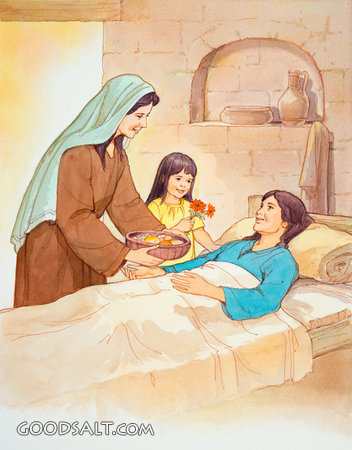 help, sick, collection, woman, food, mother, daughter, bring, flowers, lifeway