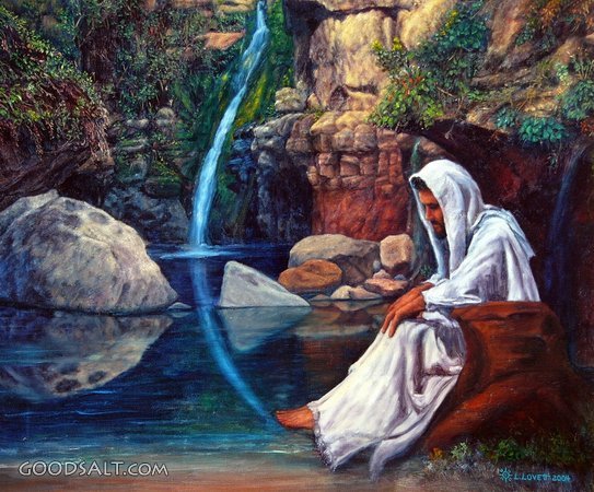 Water of Life, Jesus in Prayer by a Grotto Waterfall