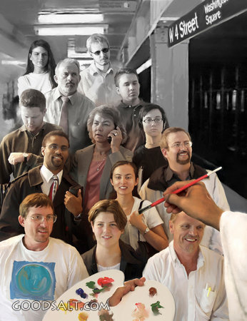 Jesus Paints Group of People Ephesians 2:10 happy, people, busy, modern, Jesus, color, painting, men, women, african, american, business, bored, savior, paintbrush, palette, subway, annoyed, impatient, paint, editorial, smiling, irritated PROJECTION - License for PowerPoint™ PRINT – buy a print of this picture; optional frame Bible Hub |
