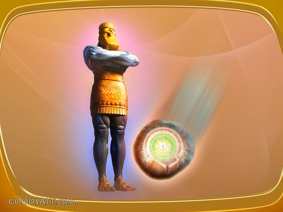 Daniel's Dream Interpreted Daniel 2:44-45 Daniel 2:34-35 symbolism, god, Jesus, symbolical, smash, rock, head, man, clay, feet, iron, silver, statue, symbol, interpret, interpretation, thigh, vision, dream, daniel, prophecy, babylon, belly, chest, gold, golden, babylonian, empire, symbolic, empires, arms, toes, metaphorical, metaphor, silver chest, bronze thighs, thighs, prophesy, legs, prophesied, babylonian empire, silver arms, legs of iron, feet of miry clay, feet of clay, miry clay, toes of iron, toes of miry clay, neo-babylonian, babylon dynasty, false gods, false god, eschatology, eschatological, miry, prophecies PROJECTION - License for PowerPoint™ PRINT – buy a print of this picture; optional frame Bible Hub |