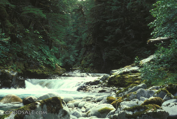 God's Second Book John 7:38 water, flowing, nature, dense, spring, rock, photography, inspirational, river, creek, stream, forest, wilderness, woods, trees, foliage, leaves, rocks PROJECTION - License for PowerPoint™ PRINT – buy a print of this picture; optional frame Bible Hub |