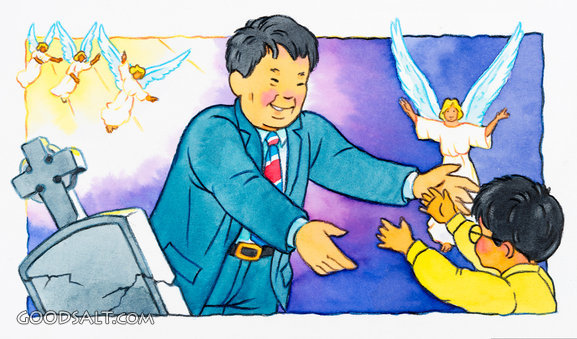 Boy Reunited With Grandfather at Resurrection Revelation 21:4 1 Thessalonians 4:16 John 11:18-27 angels, second coming, the resurrection, state of the dead, resurrection day, resurrection of the dead PROJECTION - License for PowerPoint™ PRINT – buy a print of this picture; optional frame Bible Hub |