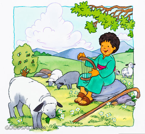 Little Shepherd Boy, David Playing His Harp 1 Samuel 19:9 shepherd boy, little david playing his harp, bible stories, king david, king david as a child, little david caring for his sheep, little shepherd boy PROJECTION - License for PowerPoint™ PRINT – buy a print of this picture; optional frame Bible Hub |