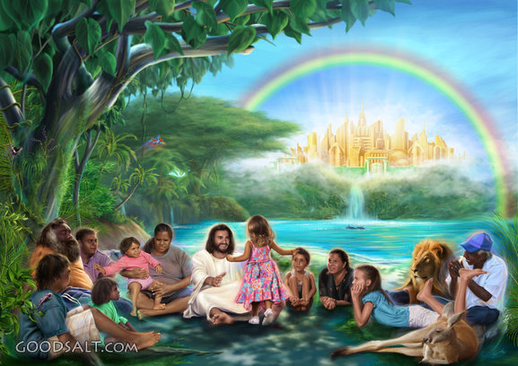 Eden Restored Isaiah 65:17-25 Revelation 21:1-7 Revelation 22:1-5 Revelation 21:23-25 2 Peter 3:13 Amos 9:13-15 happy, lord, earth, ethnic, life, lamb, heaven, jerusalem, new, river, paradise, eternal, forever, eden, new jerusalem, mansions, Dwell, inhabit PROJECTION - License for PowerPoint™ PRINT – buy a print of this picture; optional frame Bible Hub |