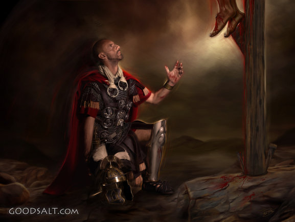 The Centurion Matthew 27:54 Mark 15:39 Luke 23:47 Ephesians 1:7 John 19:17-18 John 8:32 golgotha, crucified, Jesus, man, blood, centurion, mercy, righteous, cross, son, earthquake, forgiveness, repentance, crucifixion, love, soldiers PROJECTION - License for PowerPoint™ PRINT – buy a print of this picture; optional frame Bible Hub |