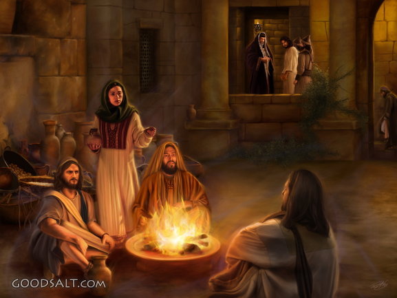 Peter's Denial Mark 14:66-72 Luke 22:54-62 John 18:15-27 Jesus, nazareth, denies, girl, disciple, sad, peter, simon, servant, wept, follower, rooster, curse, Caiaphas, high priest, galilean PROJECTION - License for PowerPoint™ PRINT – buy a print of this picture; optional frame Bible Hub |