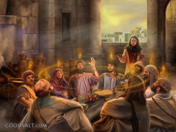 Day of Pentecost Acts 2:1-4 Acts 1:4-8 John 16:7-15 Galatians 5:16-26 language, speak, miracle, wind, accord, gathered, spirit, heaven, jerusalem, holy, pentecost, fire, utterance, disciples, tongues, marvelled PROJECTION - License for PowerPoint™ PRINT – buy a print of this picture; optional frame Bible Hub |