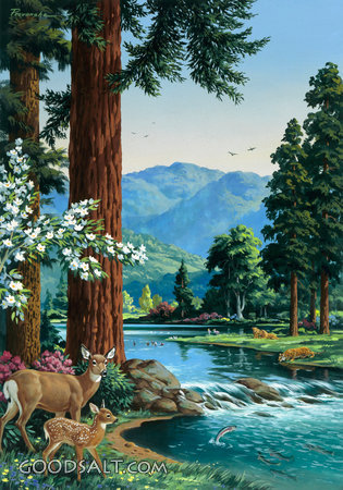flower, flow, flowing, nature, bird, deer, animal, mountain, child, baby, tree, bank, eden