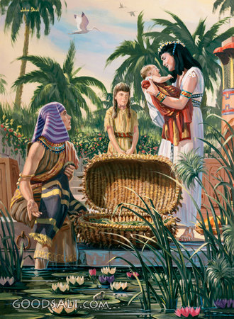 Moses and Pharo's Daughter Exodus 2:1-10 israelite, handmaid, boy, sister, baby, river, egypt, basket, bank, Merriam, daughter, moses, egyptian, nile, princess, bulrush PROJECTION - License for PowerPoint™ PRINT – buy a print of this picture; optional frame Bible Hub |