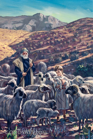 father, child, boy, shepherd, lamb, sheep, watching, son, flock, herd, john steel