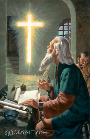 write, shackle, chain, messenger, man, scroll, light, paul, cross, writing, jail, prison, prisoner, message, chained
