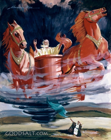 sky, whirlwind, ascend, elijah, elisha, fire, chariot, horses