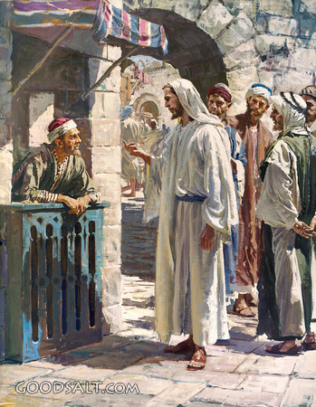 Jesus' Invitation to Matthew to Follow Him Luke 5:27 Matthew 9:9-13 Mark 2:13-14 people, christ, Jesus, talk, talking, man, men, crowd, merchant, group, collector, tax, harry anderson PROJECTION - License for PowerPoint™ PRINT – buy a print of this picture; optional frame Bible Hub |