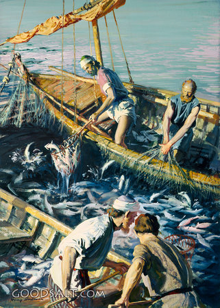 miracle, your, side, cast, men, boat, fish, fishing, net, fishermen, harry anderson