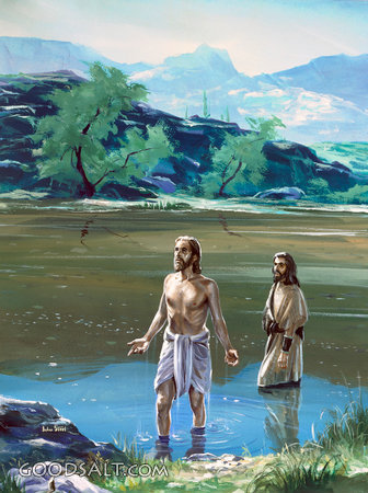 christ, Jesus, baptised, man, men, baptist, john, jordan, river, clean, john steel