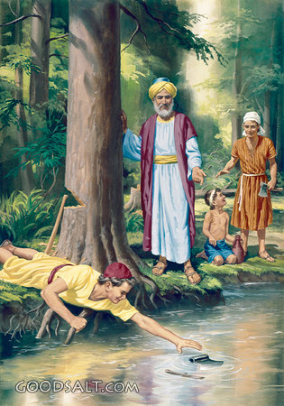 Elisha Retrieves an Axe Head 2 Kings 6:1-7 miracle, axe, jordan, river, elisha, prophet, riverside, servant, clyde provonsha, axehead, pacific press publishing PROJECTION - License for PowerPoint™ PRINT – buy a print of this picture; optional frame Bible Hub |