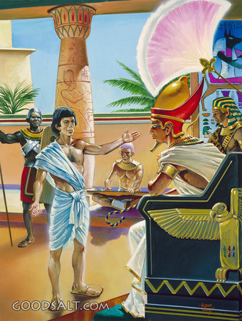 Joseph and Pharaoh Genesis 41:14-46 explain, communicate, explanation, question, royal, joseph, throne, egypt, communication, counselor, counsel, pharaoh, herber pintos, dialog, pacific press publishing PROJECTION - License for PowerPoint™ PRINT – buy a print of this picture; optional frame Bible Hub |