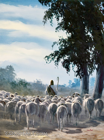 Good Shepherd John 10:14 christ, Jesus, jesus christ, john steel, the good shepherd, sheep following jesus, jesus and sheep, jesus and lambs, jesus and his flock, flock of sheep, flock of lambs, pacific press publishing PROJECTION - License for PowerPoint™ PRINT – buy a print of this picture; optional frame Bible Hub |