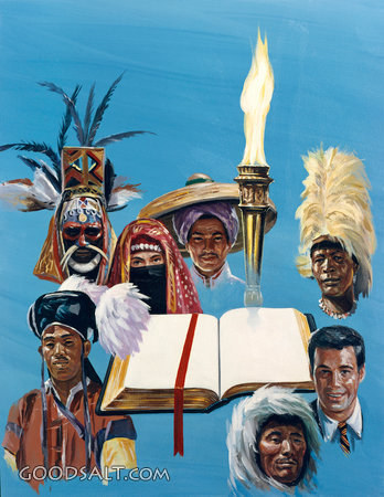 The Bible Speaks to All People Revelation 14:6-7 bible, international, american, torch, eskimo, muslim, bible study, john steel, universal principles, gods love, international bible, races, gods people, chinese man, african man, muslim woman, eternal flame, pacific press publishing PROJECTION - License for PowerPoint™ PRINT – buy a print of this picture; optional frame Bible Hub |