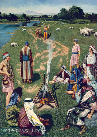 campfire, greeting, joseph, brice norman, joseph visits brothers, jacob's sons, pacific press publishing