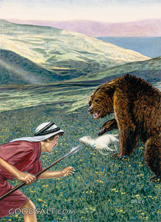 Bear Attack! 1 Samuel 17:34 1 Samuel 17:37 bear, spear, brice norman, david and bear, shepherd boy david, david and spear, grizzly, pacific press publishing PROJECTION - License for PowerPoint™ PRINT – buy a print of this picture; optional frame Bible Hub |