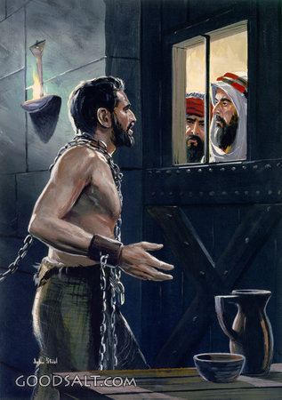 John the Baptist Enquires About Jesus Ezekiel 19:9 Lamentations 3:7 Acts 28:20 Matthew 11:2-3 Luke 7:18-20 plead, paul, prison, one, pleading, prisoner, chains, john steel, pacific press publishing, js-0169 PROJECTION - License for PowerPoint™ PRINT – buy a print of this picture; optional frame Bible Hub |