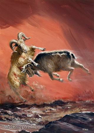 wounded, goat, ram, wound, horn, conflict, horns, john steel, pacific press publishing, js-0289