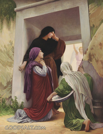 The Women at the Tomb Matthew 28:1-7 Mark 16:1-7 Luke 24:1-8 John 20:11-13 empty, Jesus, testament, women, tomb, new, resurrection, William A. Bouguereau, 00200 PROJECTION - License for PowerPoint™ PRINT – buy a print of this picture; optional frame Bible Hub |
