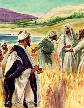 Through the Cornfields Matthew 12:1-8 Mark 2:23-28 Luke 6:1-5 Jesus, testament, sabbath, new, laws, scribes, Arthur Twidle, Teachings, Cornfields, 00218 PROJECTION - License for PowerPoint™ PRINT – buy a print of this picture; optional frame Bible Hub |