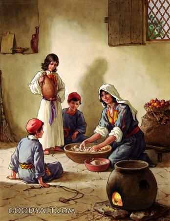 Palestinian Mother Preparing Food Matthew 13:33-35 Luke 13:20-21 cooking, bible, preparing, eating, flour, food, preparation, family, mother, times, grinding, George T. Tobin, Prep, Palestinian, 00255 PROJECTION - License for PowerPoint™ PRINT – buy a print of this picture; optional frame Bible Hub |