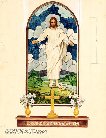 Church Window - Risen Christ Matthew 28:1-7 Mark 16:1-7 Luke 24:1-8 John 20:1 risen, christ, Jesus, testament, church, new, extra, resurrection, window, Appearances, James King, 00273 PROJECTION - License for PowerPoint™ PRINT – buy a print of this picture; optional frame Bible Hub |
