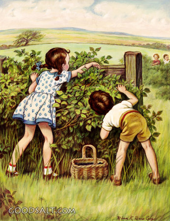two, gardening, working, picking, berries, americana, children, outdoors, Nina K. Brisley, 00312