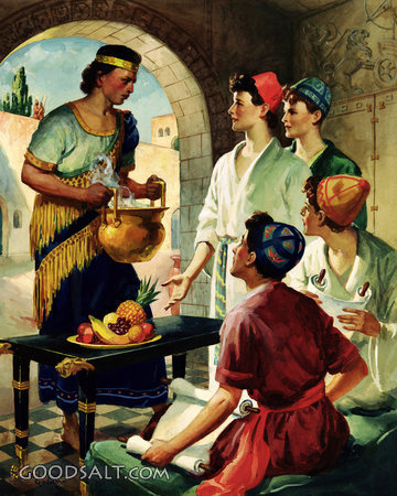 Daniel and Friends Receiving Food Daniel 1 testament, diet, healthy, old, receiving, food, isaiah, daniel, prophets, friends, Karl Godwin, Major, 00326 PROJECTION - License for PowerPoint™ PRINT – buy a print of this picture; optional frame Bible Hub |