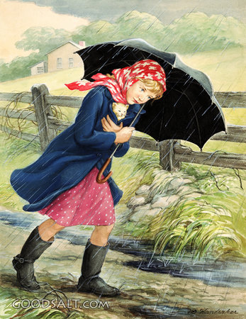 Girl Walking in Rain Psalm 91:4 Psalm 61:3 Psalm 5:11 nature, weather, girl, rain, americana, children, walking, outdoors, Dorothy Handsaker-Scott, 00365 PROJECTION - License for PowerPoint™ PRINT – buy a print of this picture; optional frame Bible Hub |