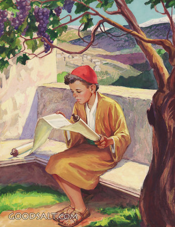 Boy Reading Scroll Deuteronomy 17:19 Joshua 8:34 Nehemiah 8:18 Isaiah 34:16 2 Corinthians 3:2 Ephesians 3:4 1 Thessalonians 5:27 god, reading, education, timothy, bible, boy, scroll, loving, home, school, serving, times, Victor Child, 00379 PROJECTION - License for PowerPoint™ PRINT – buy a print of this picture; optional frame Bible Hub |