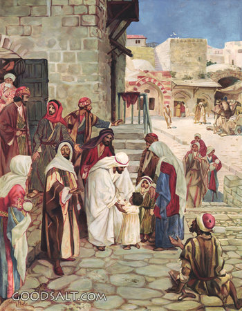 Jesus Blesses Little Children Matthew 19:13-15 Mark 10:13-16 Luke 18:15-17 Jesus, testament, new, little, children, disciples, friends, Blesses, William Brassey Hole, 00382 PROJECTION - License for PowerPoint™ PRINT – buy a print of this picture; optional frame Bible Hub |