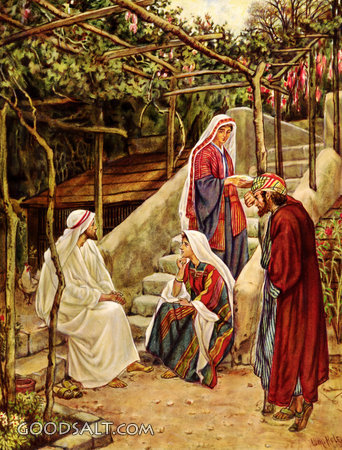 Jesus Rests at Bethany in the House of His Friends Luke 10:38-42 Jesus, testament, mary, house, new, home, martha, friends, Bethany, William Brassey Hole, Rests, 00383 PROJECTION - License for PowerPoint™ PRINT – buy a print of this picture; optional frame Bible Hub |