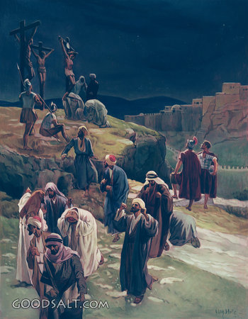 Jesus Yields Up the Ghost Matthew 27:45-56 Mark 15:33-41 Luke 23:44-49 John 19:28-30 calvary, golgotha, crucified, week, Jesus, testament, ghost, new, death, cross, easter, passion, crucifixion, William Brassey Hole, Yields, 00442, Scourged PROJECTION - License for PowerPoint™ PRINT – buy a print of this picture; optional frame Bible Hub |