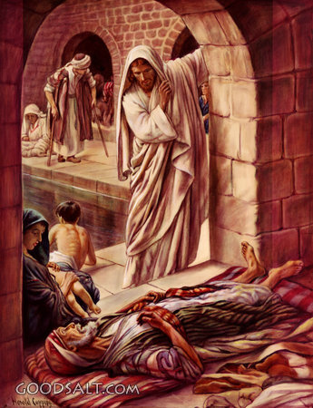 Jesus, paralyzed, pool, testament, crippled, new, bethesda, Harold Copping, Healings, 00482
