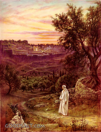 Jesus Abides in the Mount of Olives Luke 17:20-37 Matthew 24:1-41 Mark 13:1-31 Luke 21:5-38 Luke 21:37 christ, Jesus, testament, new, praying, extra, mount, Olives, William Brassey Hole, Abides, 00529 PROJECTION - License for PowerPoint™ PRINT – buy a print of this picture; optional frame Bible Hub |