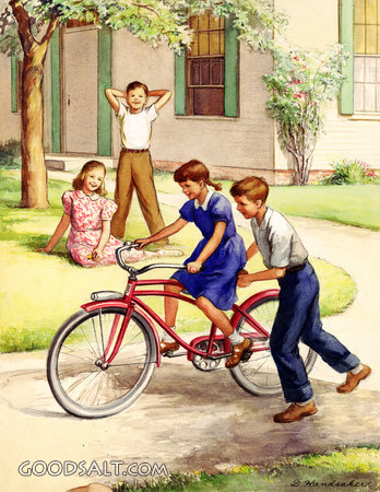 bicycle, playing, covet, americana, children, outdoors, Dorothy Handsaker-Scott, Bikes, Wagons, Thou, Shalt, 00566