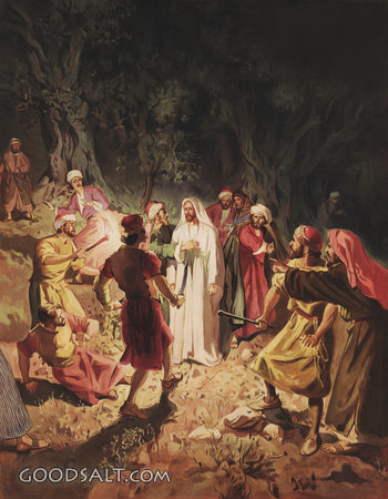 Judas Betrays Jesus With a Kiss Matthew 26:47-56 Mark 14:43-52 Luke 22:47-53 John 18:2-12 week, Jesus, betrayed, kiss, testament, new, judas, easter, passion, William Brassey Hole, Scourged, Betrays, 00582 PROJECTION - License for PowerPoint™ PRINT – buy a print of this picture; optional frame Bible Hub |