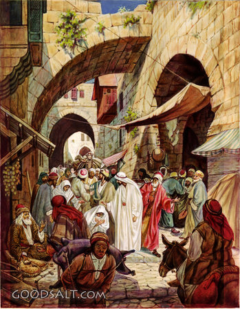 Jesus Heals a Woman in the Crowd Matthew 9:18-26 Mark 5:21-43 Luke 8:40-56 Jesus, sick, testament, woman, new, crowd, hemorrhage, heals, William Brassey Hole, Healings, 00589 PROJECTION - License for PowerPoint™ PRINT – buy a print of this picture; optional frame Bible Hub |